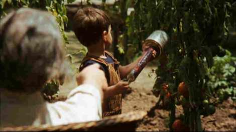A chaque tomate, il est question de transmission. Au mariage, Michael explique à Kay le métier de son père et lui présente ses frères. En cuisine avec Clemenza, Michael subit une véritable épreuve initiatique, après laquelle il pourra devenir le chef de famille. Et quand Vito meurt parmi les tomates aussi énormes qu’abondantes, son petit-fils, trop petit pour comprendre, arrose son cadavre avec le vaporisateur. Quelque chose ici repoussera. La tomate joue le rôle de courroie de transmission. Un beau cycle bien rouge.
