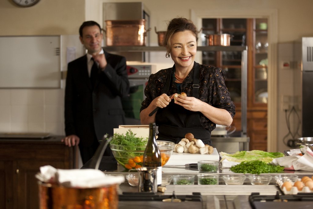 C.V. : J’ai demandé très peu de choses à Catherine [Frot], elle n’est pas du tout cuisinière. Dans une cuisine, elle n’est pas à l’aise, c’était très compliqué. Je ne lui ai demandé qu’une chose, c’est de savoir faire sauter les coques.