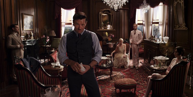 (L-r) TOBEY MAGUIRE as Nick Carraway, JOEL EDGERTON as Tom Buchanan, CAREY MULLIGAN as Daisy Buchanan, LEONARDO DiCAPRIO as Jay Gatsby and ELIZABETH DEBICKI as Jordan Baker in Warner Bros. Pictures’ and Village Roadshow Pictures’ drama “THE GREAT GATSBY,” a Warner Bros. Pictures release.