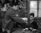 Stalag thé 1 Publié 11 janvier 2014 à 720 × 576 dans Saga Billy Wilder – 4 / De la lumière au fond du café ← Précédent Suivant → Shapiro (Harvey Lembeck), Animal (Robert Strauss) et Bagradian (Jay Lawrence). Stalag 17, 1953.